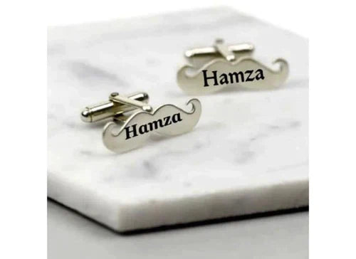 Mustache Name Engraved Cufflinks / Gold & Silver Color